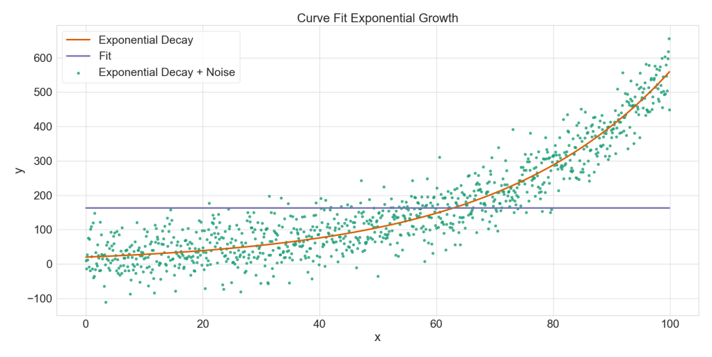Curve fitting is a very useful technique and it is really easy in Python with Scipy but there are some pitfalls. First of all, be aware of the initial values. They can lead to complete fitting failure or affect results in more subtle systematic ways. We should also remind ourselves that even with decent fitting results, there might be a more suitable function out there that can fit our data even better. In this particular example we always knew what the underlying function was. This is rarely the case in real research settings. Most of the time it is much more productive to think more deeply about possible underlying functions than finding more complicated fitting methods.